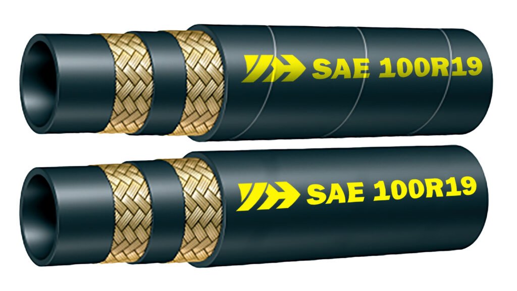 oil, water, abrasion, weather, ozone, and heat-resistant synthetic rubber plus a protective textile braid